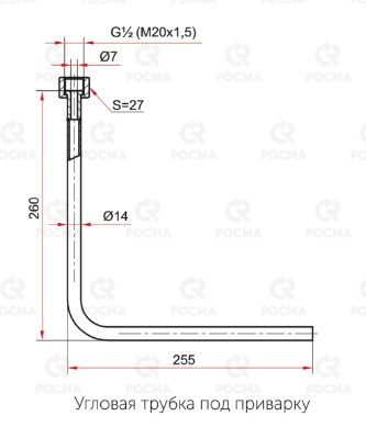 - Трубка угловая (отвод), с накидной гайкой (М20×1,5 внут.-под приварку)