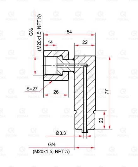 - Угловой коннектор внут. NPT1/2 - наруж. NPT1/2